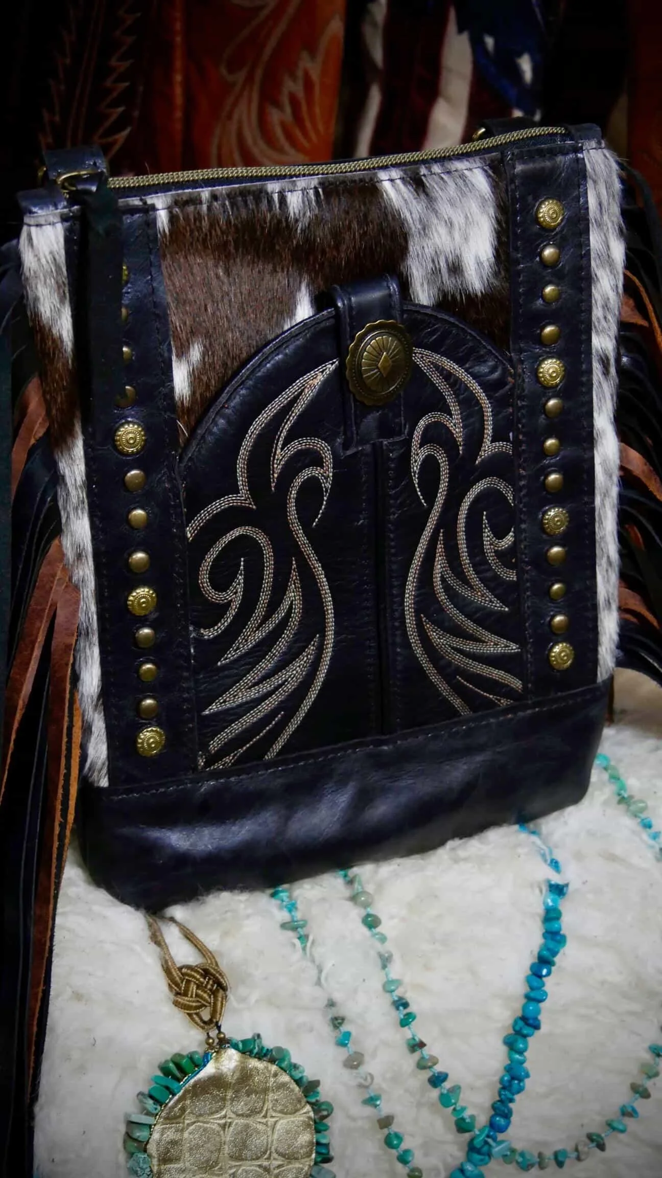 Handcut leather fringe adds movement and soul, while each hide ensures no two bags will ever be alike.