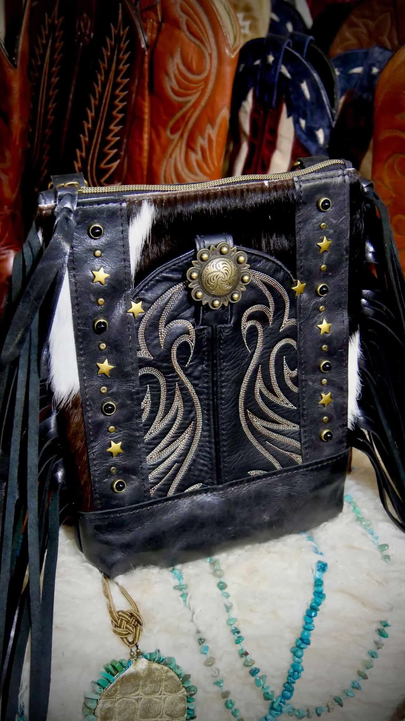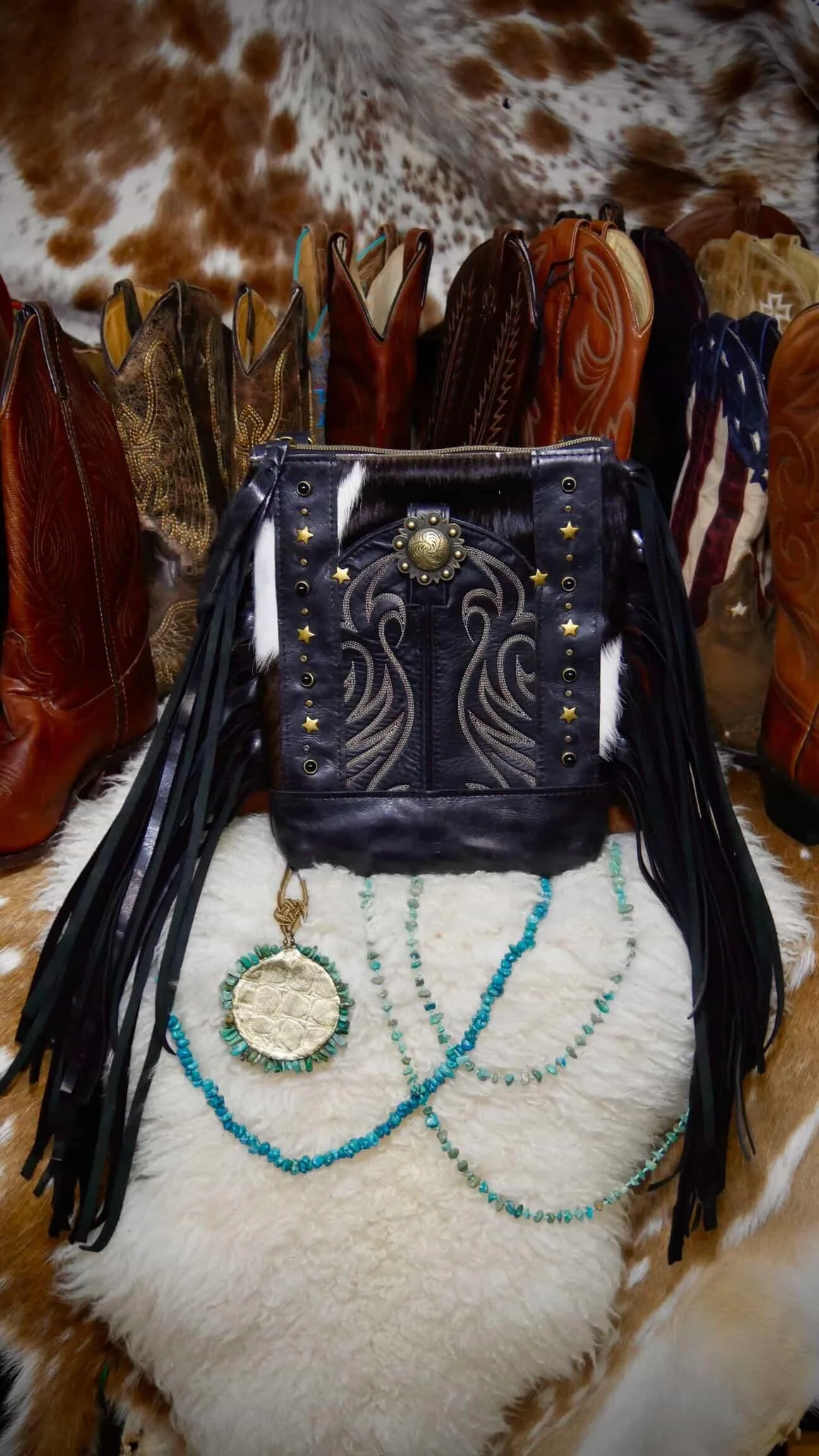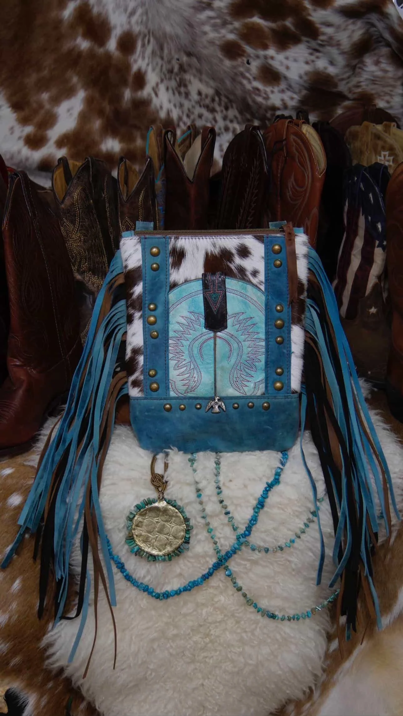 “The Ella” Turquoise Cowboy Boot Fringe Bag